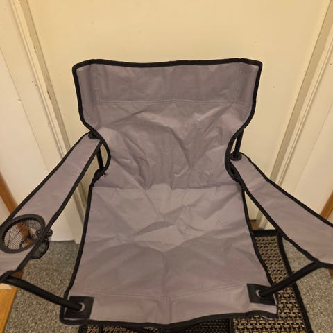 Selger 2 stk campingstoler tiil 100 kr per stk. Sort med holder for kopp i armlene. Sammenleggbar.