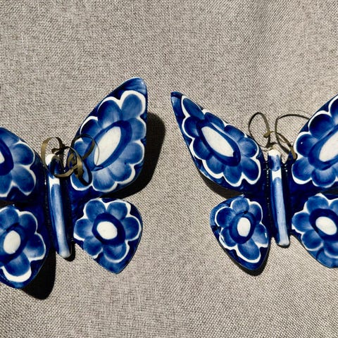 Glass sommerfugl figur med fargede detaljer i vingene. Laget av klart og farget glass. Passer som dekorasjon i hjemmet 🌸