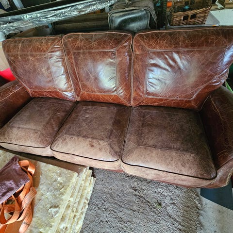 Noen bruksmerker/flekker, men avtagbart trekk på puter i sete og rygg.
