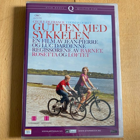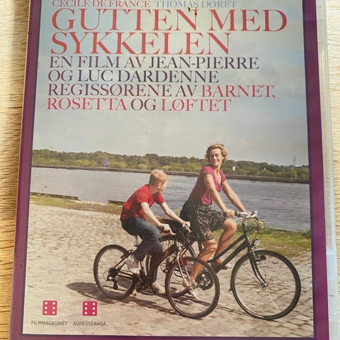 filmen 'Gutten Med Sykkelen' regissert av Jean-Pierre og Luc Dardenne. Coveret viser to personer på sykler ved en innsjø. Filmen har tekst på norsk og inneholder informasjon om regissørene og filmens tema.