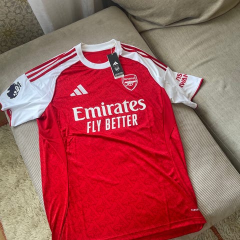 Adidas FC Bayern München fotballtrøye i størrelse L for menn. Trøyen har rødt og hvitt design med klubbens logo og sponsortrykk. Sesong 25/26