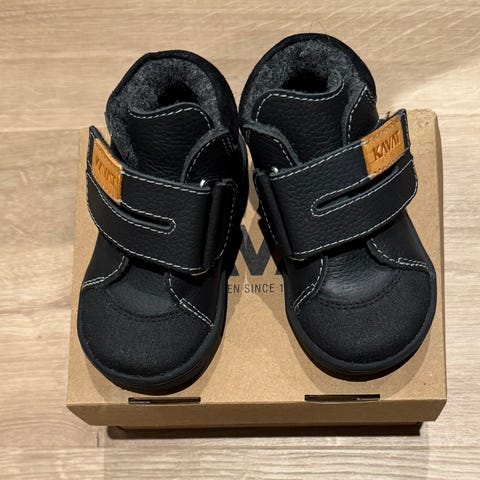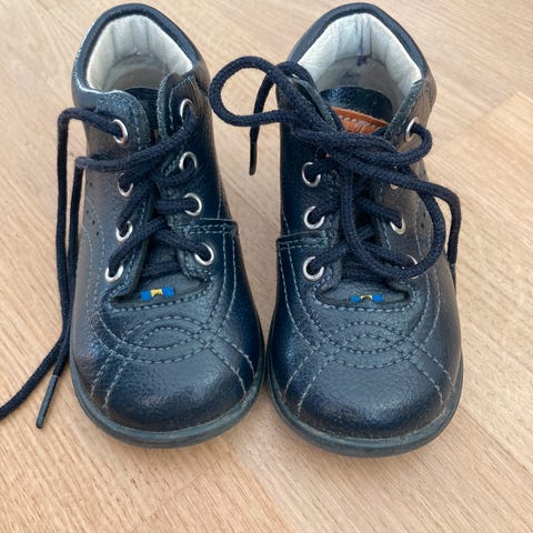 Kavat barnesko i størrelse 21, unisex modell. Skoene er blå og laget av slitesterkt materiale med snøring for justerbar passform. Sålen har gummipigger for godt grep og stabilitet. Egnet for første skopar til smårollinger.
