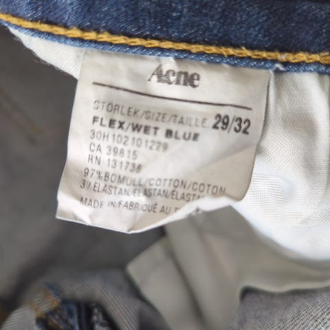 Jeg har innsett at kroppen er endret etter to fødsler og rydder derfor i buksene mine. Buksene har ligget i skapet en stund, men er lagret tørt innendørs. Kjører likevel pengene-tilbake-garanti dersom buksene skulle bli ødelagt pga. slitasje ila. de første to ukene etter kjøp.