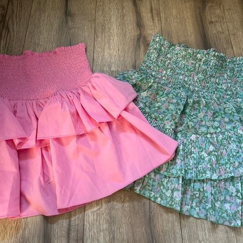 Neo Noir Rosa skjørt for kvinner i størrelse 32. Laget av 100% polyester. Skjørtet har et lagdelt design med elastisk midje for komfort. Passer til ulike anledninger og kan kombineres med flere typer overdeler. Samme med det gule bare det er strl 36. 300 pr stk