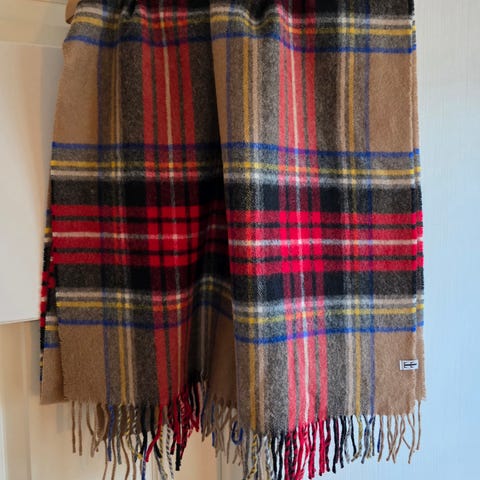 Vintage lite brukt skjerf rutet mønster 100% polyester, til salgs for Kr. 250,-
