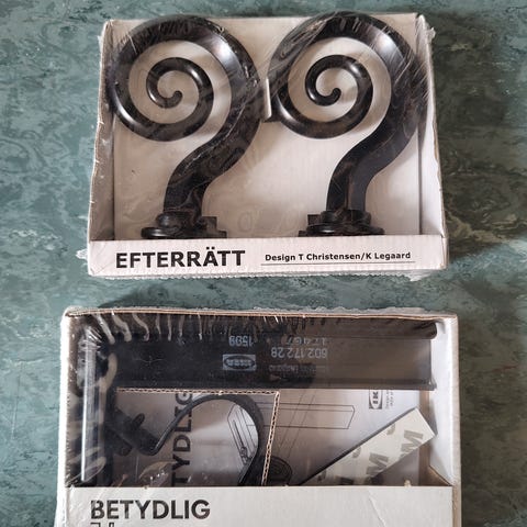 Endestykker / endeknotter til gardinstang i metall- smijern-stil.