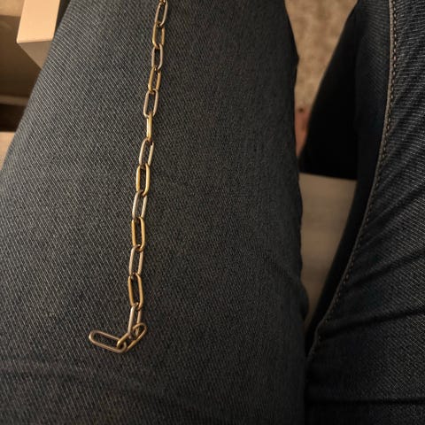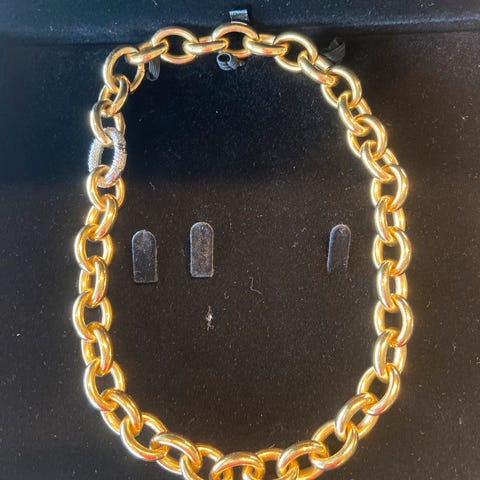 18 inch Sterling sølv meg gult gullbelaget kjede og lås besatt med kubisk zikonia og månestein. Original pris 7000 kr.