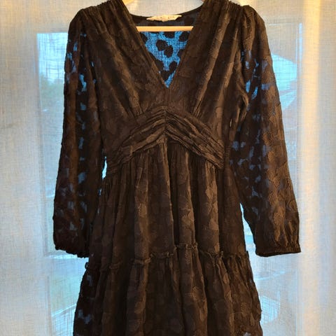 Selger denne nydelige paljettkjolen fra Missmaya med v-hals med knytebelte.