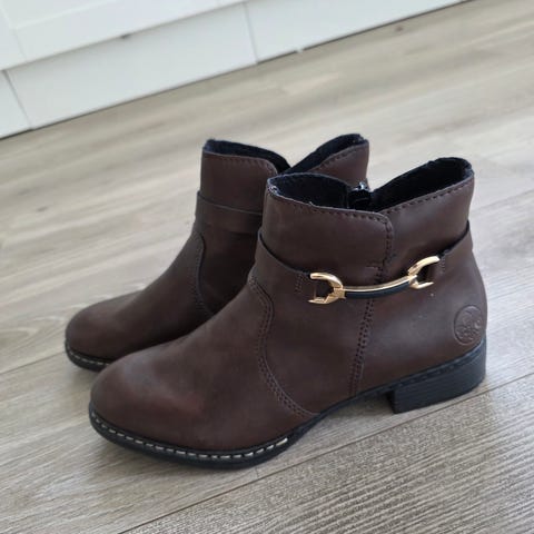 Superfine Rieker støvletter i brunt skinn med gulldetalj. størrelse 36.