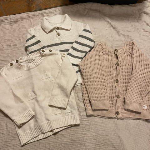 Fin strikket genser i støvet grågrønn, ca 4 mnd