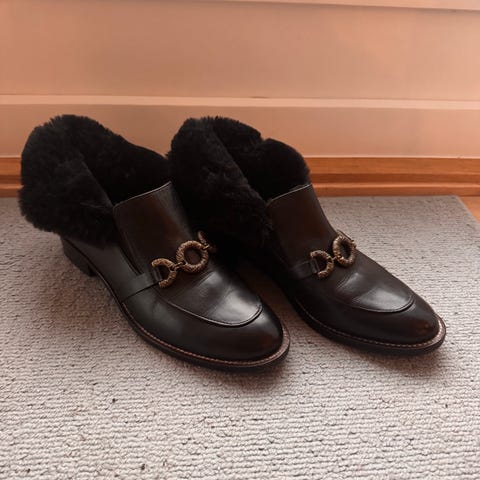Nydelige boots fra Copenhagen Shoes i ekte skinn med blanke, lakkede detaljer. Komfortable og stilige sko som passer både til hverdags og finere anledninger. Selges kun fordi de er litt små til meg.