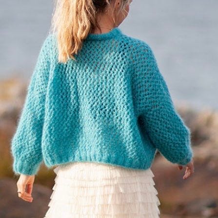 Litt endringer fra oppskrift. Ikke strikket så over-size. Modellen på bildet bruker vanligvis xs. Litt usikker på harntype, men mener det er de to på bildet. Brukt noen ganger, men blir litt for liten.