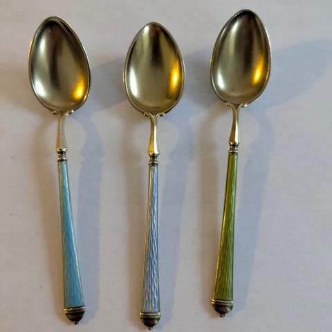 David Andersen sølvskje /sukkerskje, med 830 S stempel. Skjeen har en vridd og dekorativ skaftdesign og leveres i original eske. Passer som samleobjekt eller til dekorativ bruk.