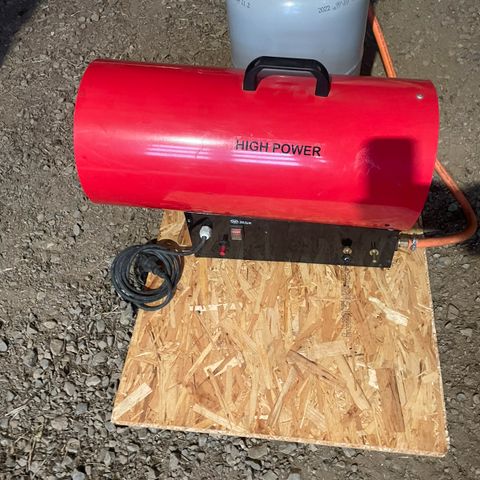 Selger en byggvarmer da jeg ikke har behov for den, den varmer hele 30kw. Følger med propanflaske. Enkel i bruk