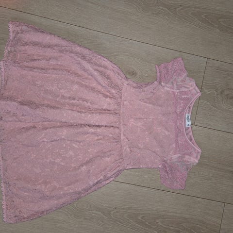Cubus kjole i størrelse 98 for jenter. Kjolen er lilla og laget med et florlett stoff med blomsterdetaljer. Den har et ermeløst design.