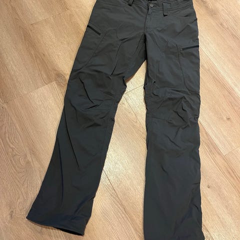 Kjempe fin og slitesterk turbukse med deilig stretch i rumpa. Det er mange gode store lommer og glidelås til leggene. Strikken rundt anklene har røket men kan strammes. Selges siden lageret av turbukser har hopet seg opp