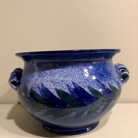 Blå keramikk glasert glasur signatur signert signed vase kopp krus kjøkken dekor dekorasjon hytte vintage retro skatter boligstyling sommer summer