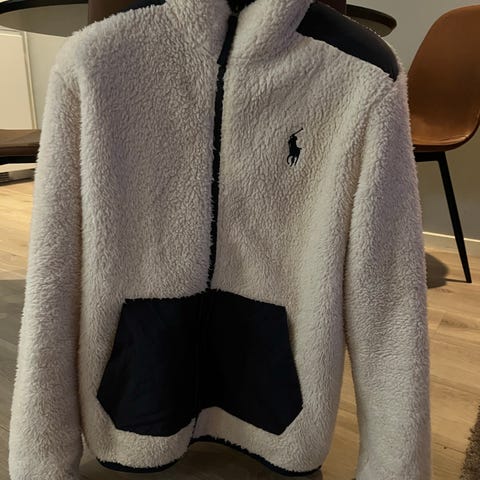 Ralph Lauren Polo herre hettegenser i størrelse S, fargen hvit. Laget av mykt og varmt materiale, egnet for kaldere vær. Har hette med snøring og en stor frontlomme. Passer for casual bruk.