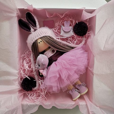 Hjerteformet gaveeske (25 cm) med Sanrio Kuromi kosebamse (12 cm) og blomster. En søt og personlig gave til bursdag, jul eller som kjærlighetsgave til kjæresten