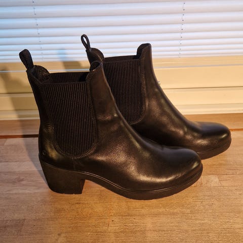 Pent brukte sorte boots fra Ecco i str 38. I "ruglete" skinn.
