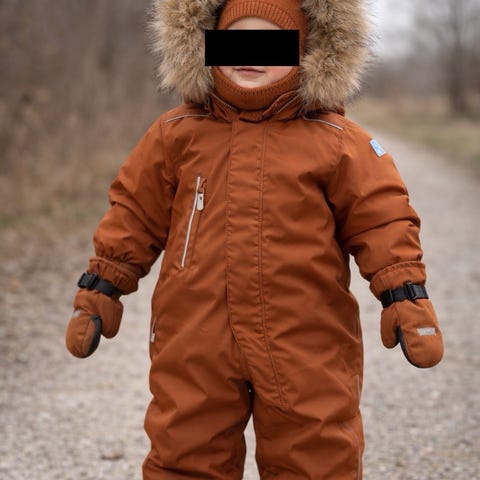 Den romslige hetten beskytter godt mot vær og vind, og er festet til parkdressen med trykknapper. Dette gir hetten mulighet til å løsne fra dressen dersom den sitter seg fast i for eksempel en huske eller en gren - og bidrar dermed til å øke barnets sikkerhet sammenlignet med en parkdress med fastsydd hette.