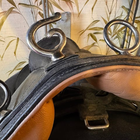 Sadelmakeri svart full størrelse sal laget av lær. Men er stor i str, lange remmer som kan justeres mye. Har 2 derfor aldr brukt. Følger ikke med gjord. Farge svart.