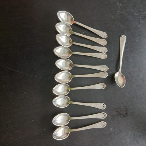 Alle skjeene god stand. En skje har en liten nesten usynlig bulk. Se bilde. Pris eller bud.