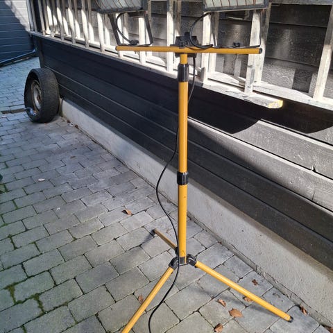 Mareld arbeidslampe med LED-lys, 10 watt effekt. Lampen har et robust design med svart og blå farge, og er beregnet for bruk i arbeidsmiljøer som krever belysning. Utstyrt med strømkabel og støpsel for enkel tilkobling.