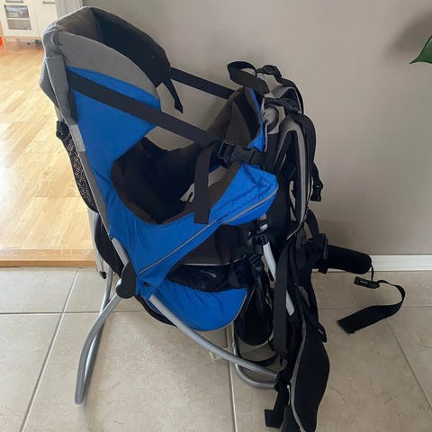 Dette er en bæresele med hard ramme, designet for å bære små barn.