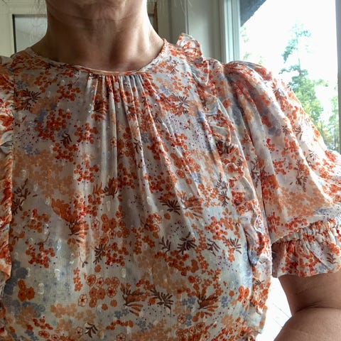 Kjempefin kjole i cherry blossom print fra ByTimo🍒 Vaffelstrikk i livet, knepping i front og lommer i sidene.