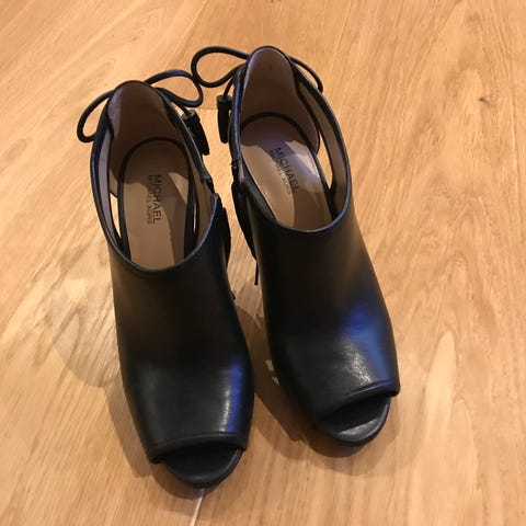 Michael Kors hæler i størrelse 41, laget av nude lakkert skinn. Skoene er kun brukt en gang, men har noen merker på hælene og på ene tuppen.
