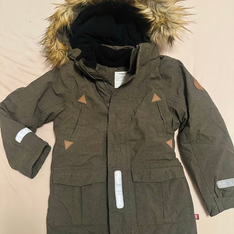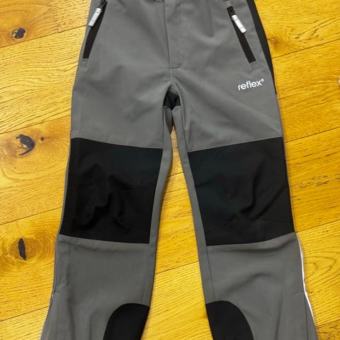 Brukt softshell/skallbukse fra reflex selges. Har noen flekker som ikke går av i vask og er sydd i rumpen. Barnet har dog aldri blitt våt i rumpen eller på knærne når det har brukt buksen.