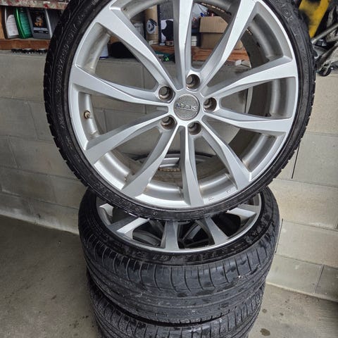 Dekk er 255/40-19 piggfritt, der to er helt utslitte