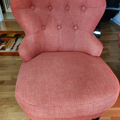 Med litt kjærlighet vil denne stolen blir som ny igjen. Jeg har tatt av trekket som vist på bilde nr. 2, men har tatt vare på trekket, slik at man kan bruke dette som mal for nytt trekk.