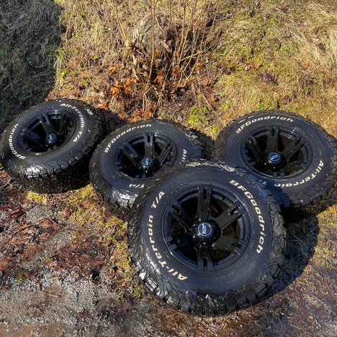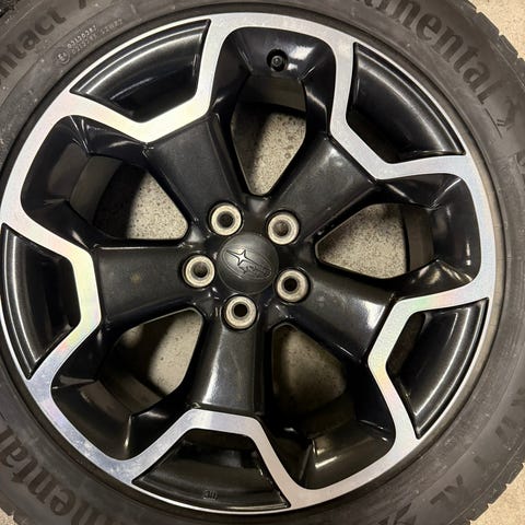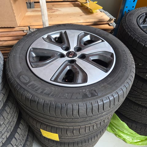 Flotte originale Toyota felger med gode piggfrie Continental dekk på. Hjulene har tidligere stått på en Toyota Hilux. Omtrent 7 mm mønster igjen på dekka!