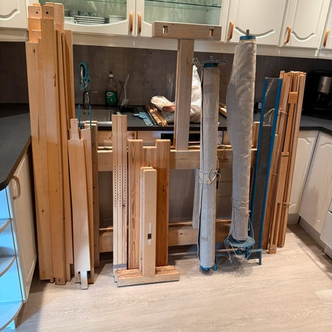 Gammel vev gis bort mot henting. Kan bygges noe stilig eventuelt med treverket