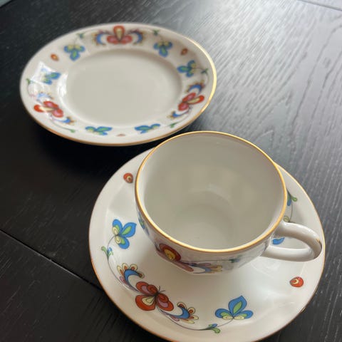Porsgrund Bondemønster kaffekopp med skål
