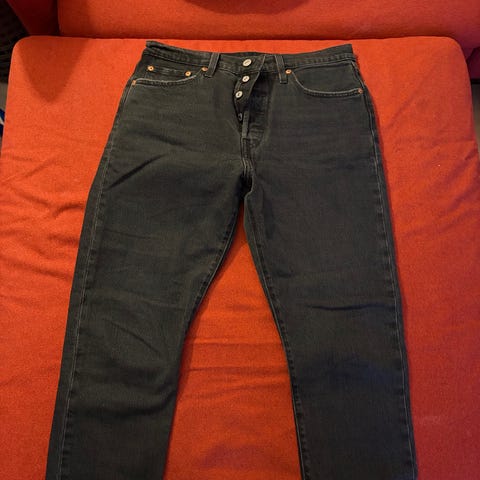 Tøffe svarte Levis jeans, str. 29. Pent brukt. Hentes på Torshov. Heis.