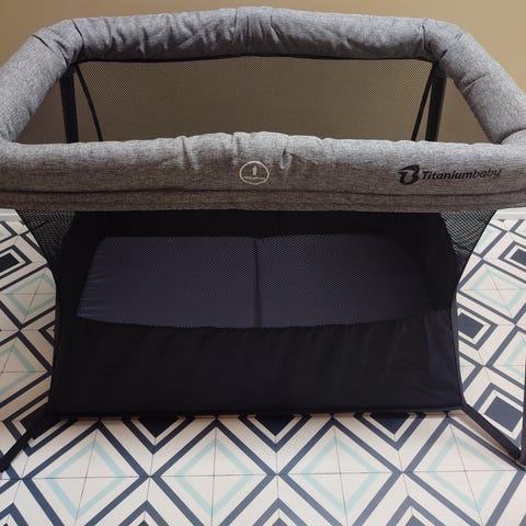 Madrass og beige/hvit sengekant Saga lekegrind 100x100vm