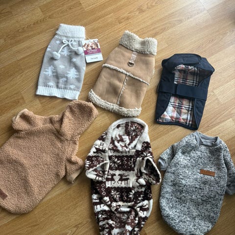 Pent brukt selges samlet, eller hver for seg. Sekk kr 200, rød sekk kr 300,