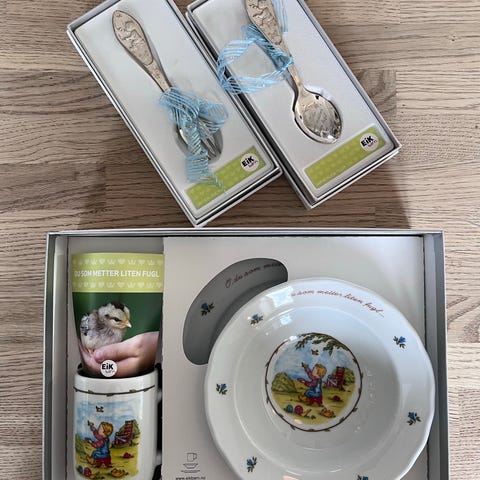 Lastebil i bevegelseFiks ferdig5 500 krUbrukt sett med kopp, grøtbolle, tallerken, sølvgaffel og sølvskje til gutt 👦🏼💙HamarLegg til som favoritt.