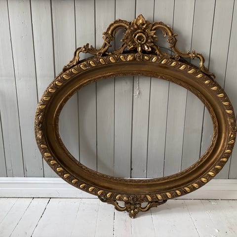 Antikk veggspeil med dekorativ ramme i tre. Speilet har en del mønster i glasset og ramme i tre. Speilet har solid oppheng på baksiden for montering på vegg. 30-40-tallet.