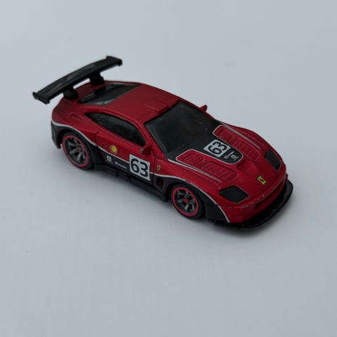 Mercedes-Benz CLK GTR modellbil i sølv farge med racingdekorasjoner. Modellen har detaljer som spoiler og racinggrafikk, og er laget for samling eller som leketøy.