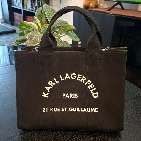 KARL LAGERFELD Tote Bag i beige farge laget av andre materialer. Vesken er designet for damer og har håndtak for bæring. Den har trykket tekst på forsiden.