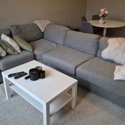 Sofaen har ligget i dyr og røyke fritt leilighet.