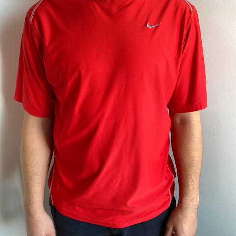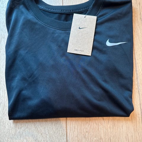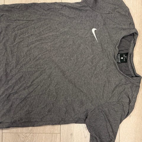 Nike Dri-FIT T-skjorte for menn i størrelse L, grå farge. Laget av fukttransporterende materiale egnet for fitness og trening.