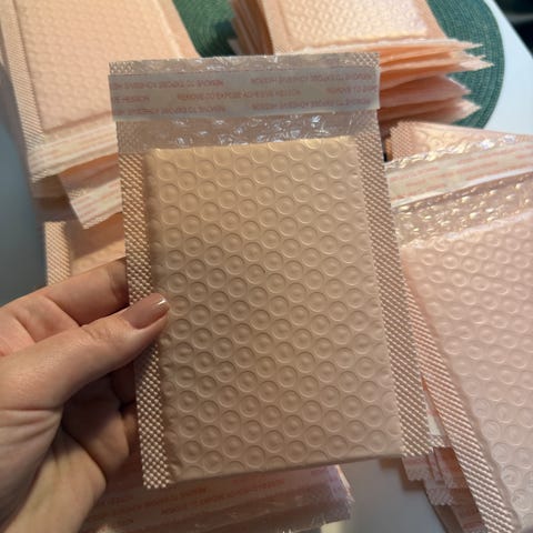 Boblekonvolutter, størrelse ca 21cm x15cm. Hele konvolutten er laget av plast.
