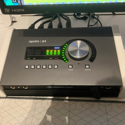 Selger Universal Audio Apollo x4 Heritage Edition. Fantastisk lydkort med innebygde UAD-plugins og topp lydkvalitet – perfekt for studio og profesjonell produksjon.