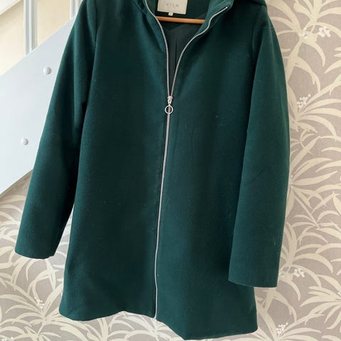 Fin grå/svart ytterjakke/kåpe. Fremstår som ny. Jakken/kåpa har skrått glidelås som lukking i front og høy hals. Jakken/kåpa er foret med glatt for og er i str. M.