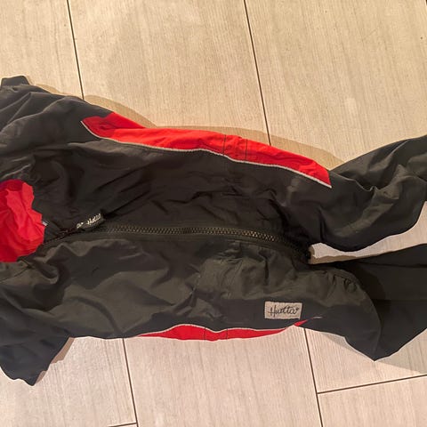 Selger en rød regnjakke til liten hund, veldig lite brukt og i god stand. Perfekt for regnfulle høst- og vinterturer.